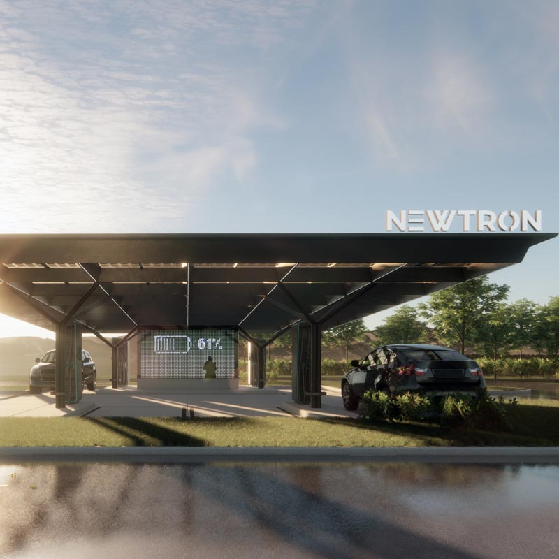 Es wird ein Steuerschrank mit dem NEWTRON Energie-Management-System mit ausreichend Abgangsfeldern für die Schnelladepunkte integriert. Die in der NSHV integrierte Steuerungselektronik steuert und visualisiert intelligent die Energielasten und Energiequellen am Standort.